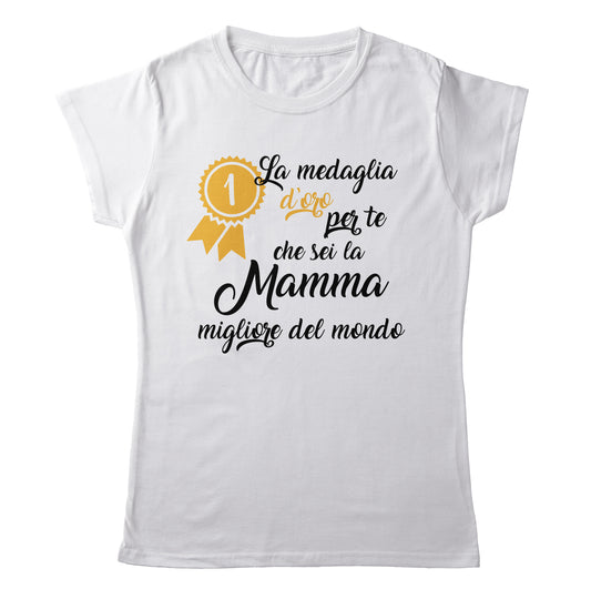 TeesBlitz T-Shirt divertente - La medaglia d'oro per te che sei la mamma migliore del mondo - tee21-036